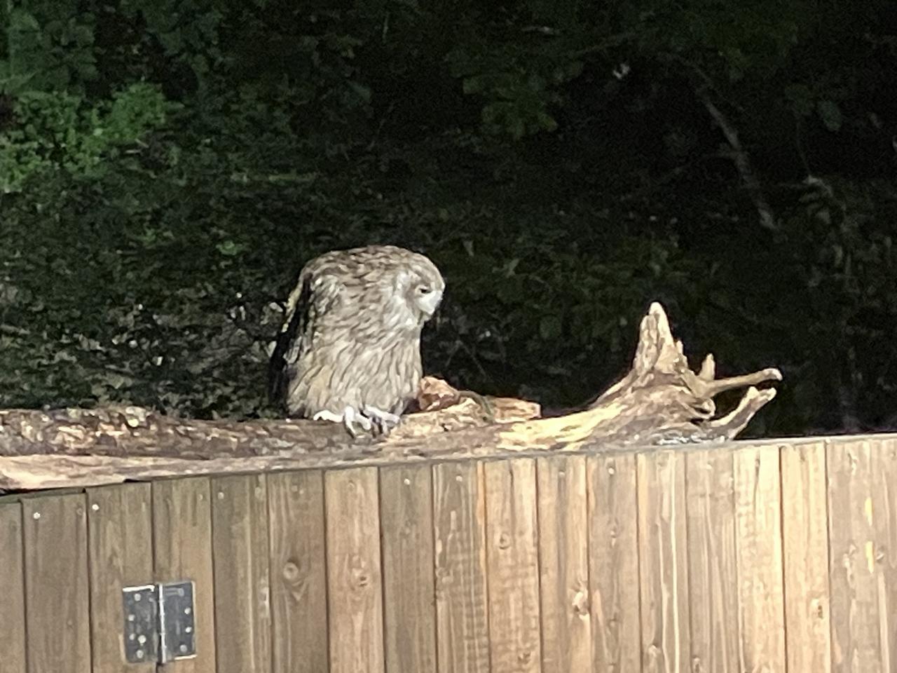 なんと、グッドタイミングで質問したのか。おかげで、私も、シマフクロウを見れました。ほんの10分ぐらいでしたが、エサ台の銀色に輝く魚を2匹、ペロリと食べてました。