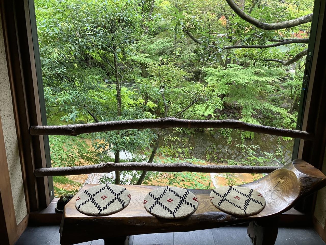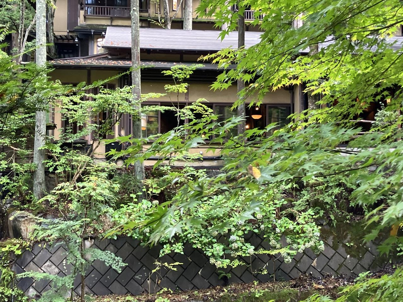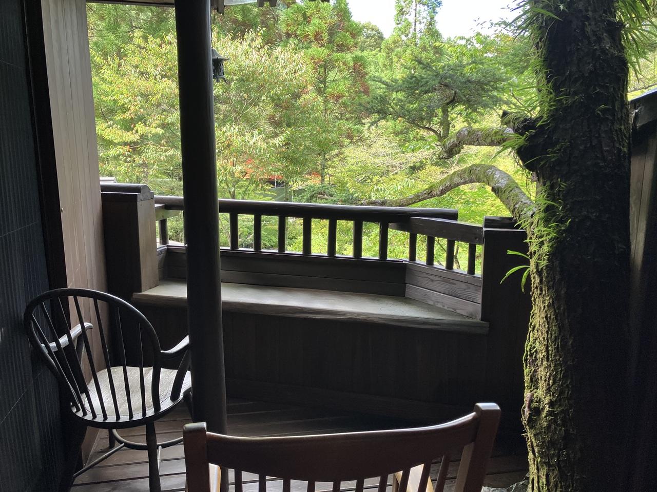 お部屋からは岩の湯1階フロアの屋根越しに、豊かな森が見渡せます