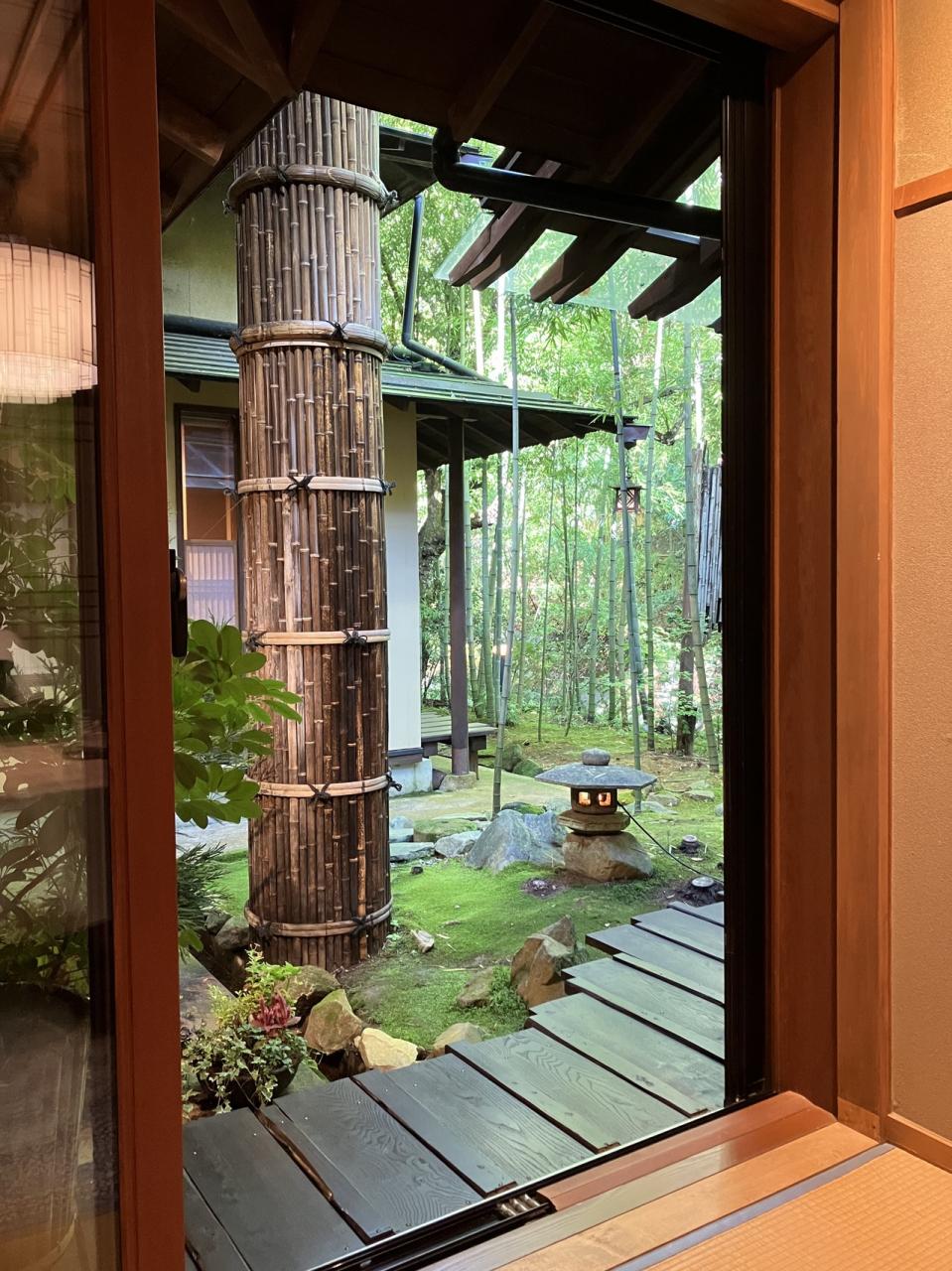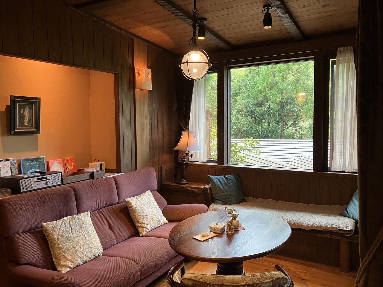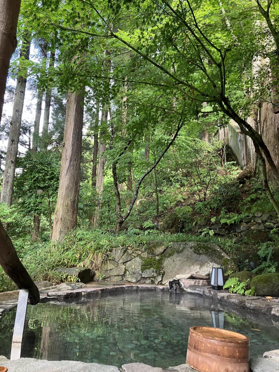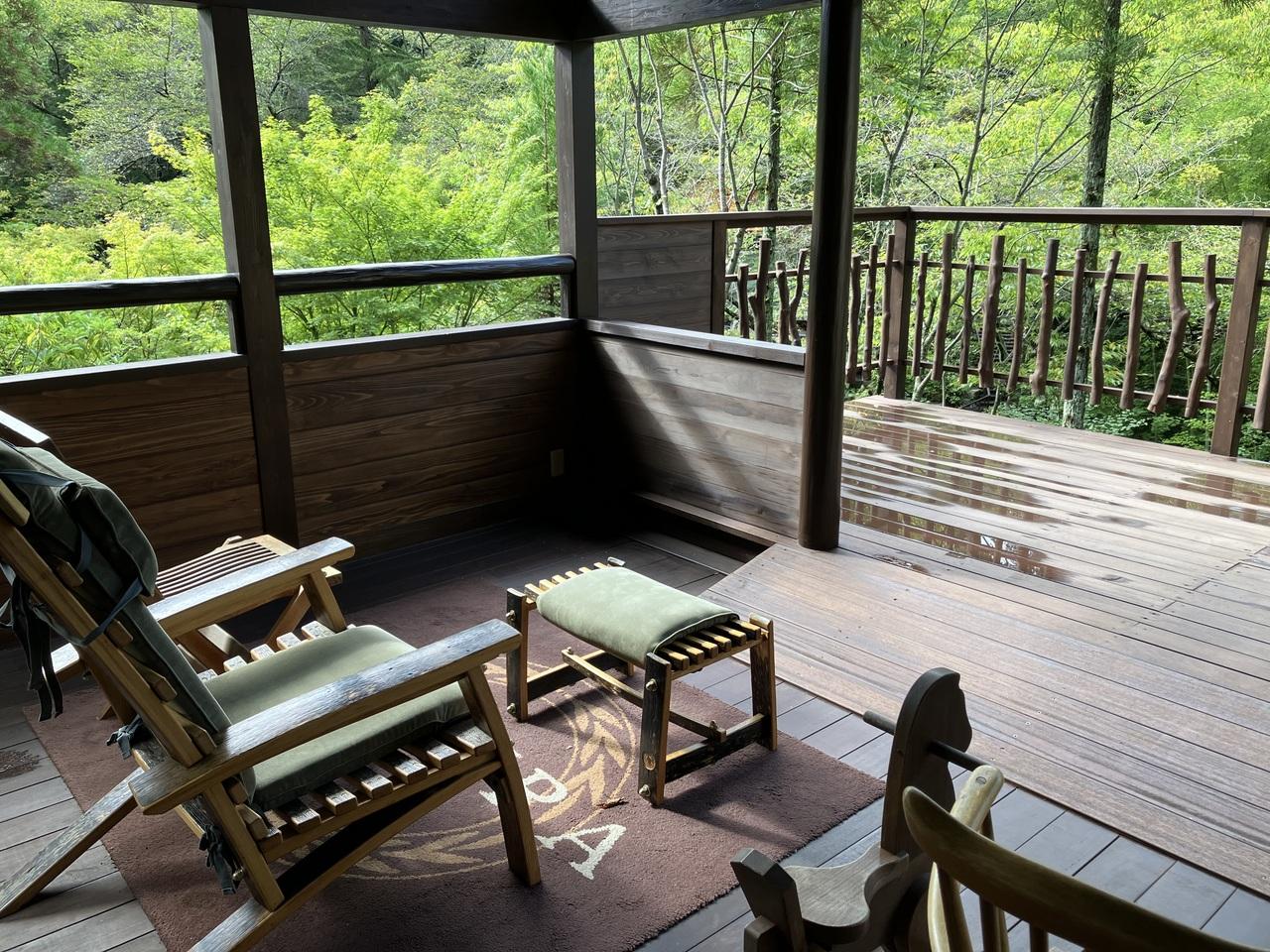 お部屋からは岩の湯1階フロアの屋根越しに、豊かな森が見渡せます