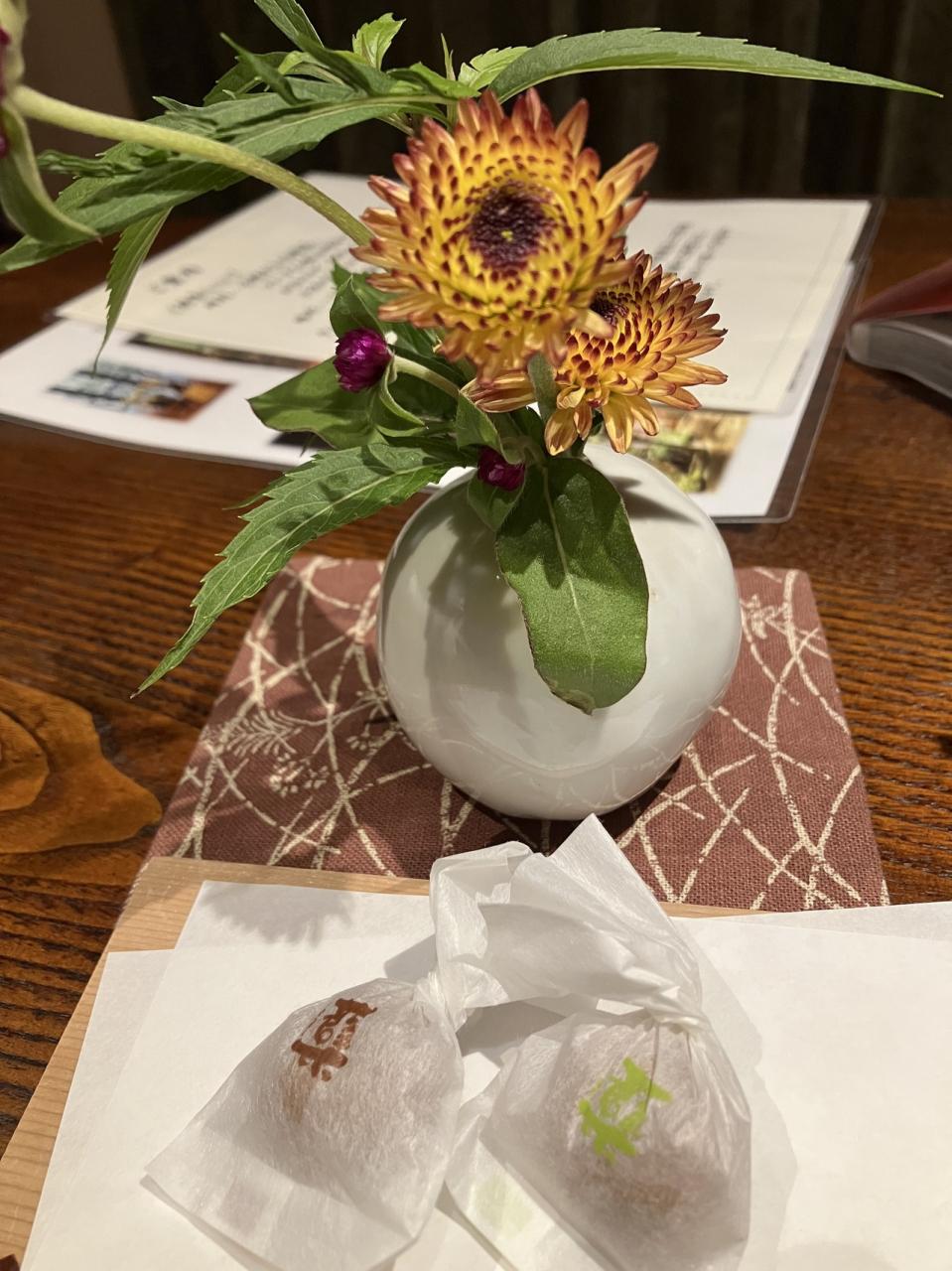 お部屋の中も玄関、床の間、洗面、トイレ、テーブルの上にいろいろなお花があって、癒されました