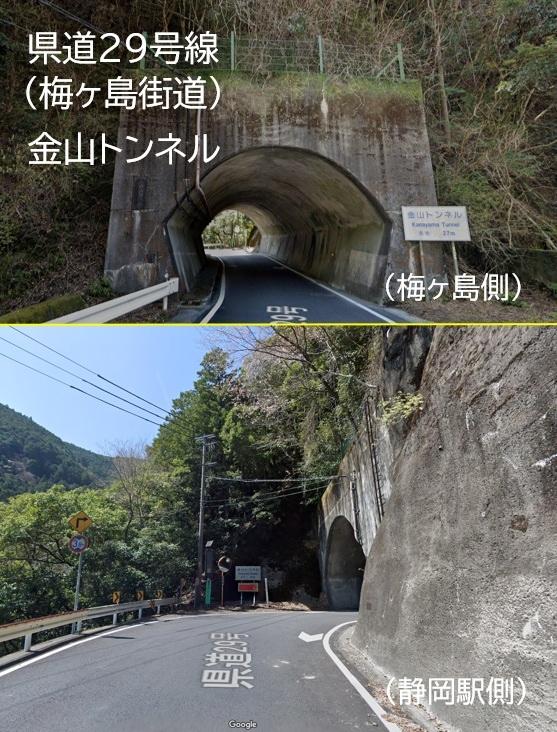 チョッと変わった形をした「金山トンネル」を抜けると、ほぼ直角に曲がります。※次のコマを参照