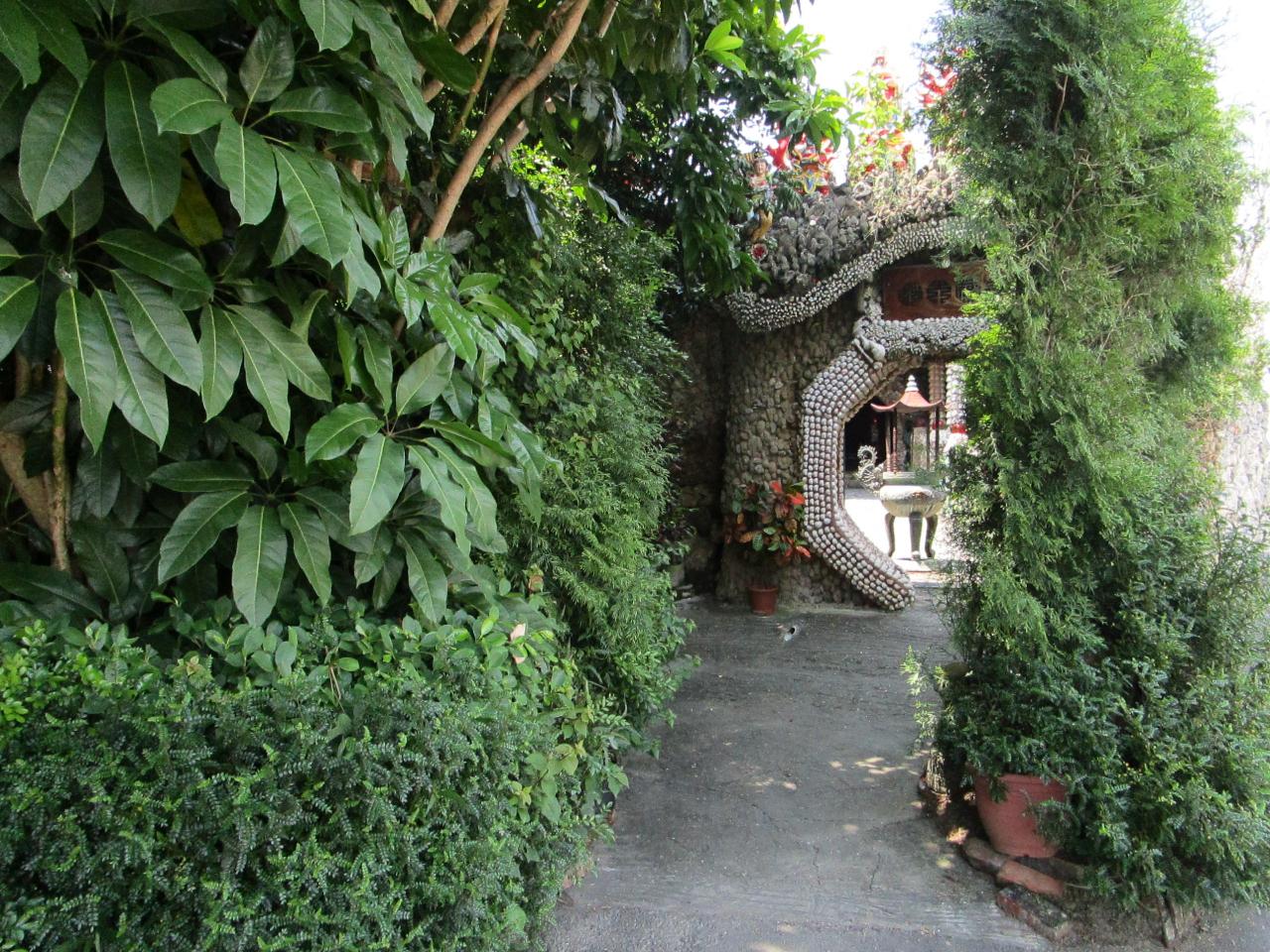 本業はこっちなのかな?Wikiを見ますとこの廟を作った黄さんは、貧しい農家の生まれで、学業もそこそこに12歳から一家を支えるためにお仕事に。それで、この地に熱帯魚の養殖所作り、さらには鹿港に水族館も作ったとか。それで、ある夜夢に「ここに廟を作りなされ」と杖を持った仙人に。。それで貝殻を集めてきて、作り始めたんだそうで。だけどまあ変わってるよね。。やっぱり妻子からは受け入れられておらず、結構小言言われてたみたいですが、、そのうち妻子も面倒くさくなって来て言わなくなったらしい。。これこそ!男のロマン!