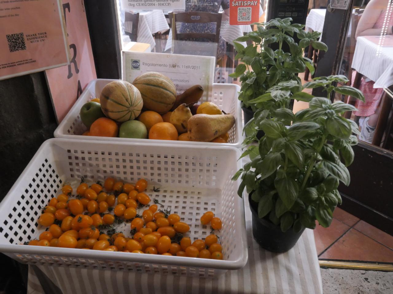 お店の前に野菜が置いてある。野菜料理が得意らしいのでそれを頼むことに。