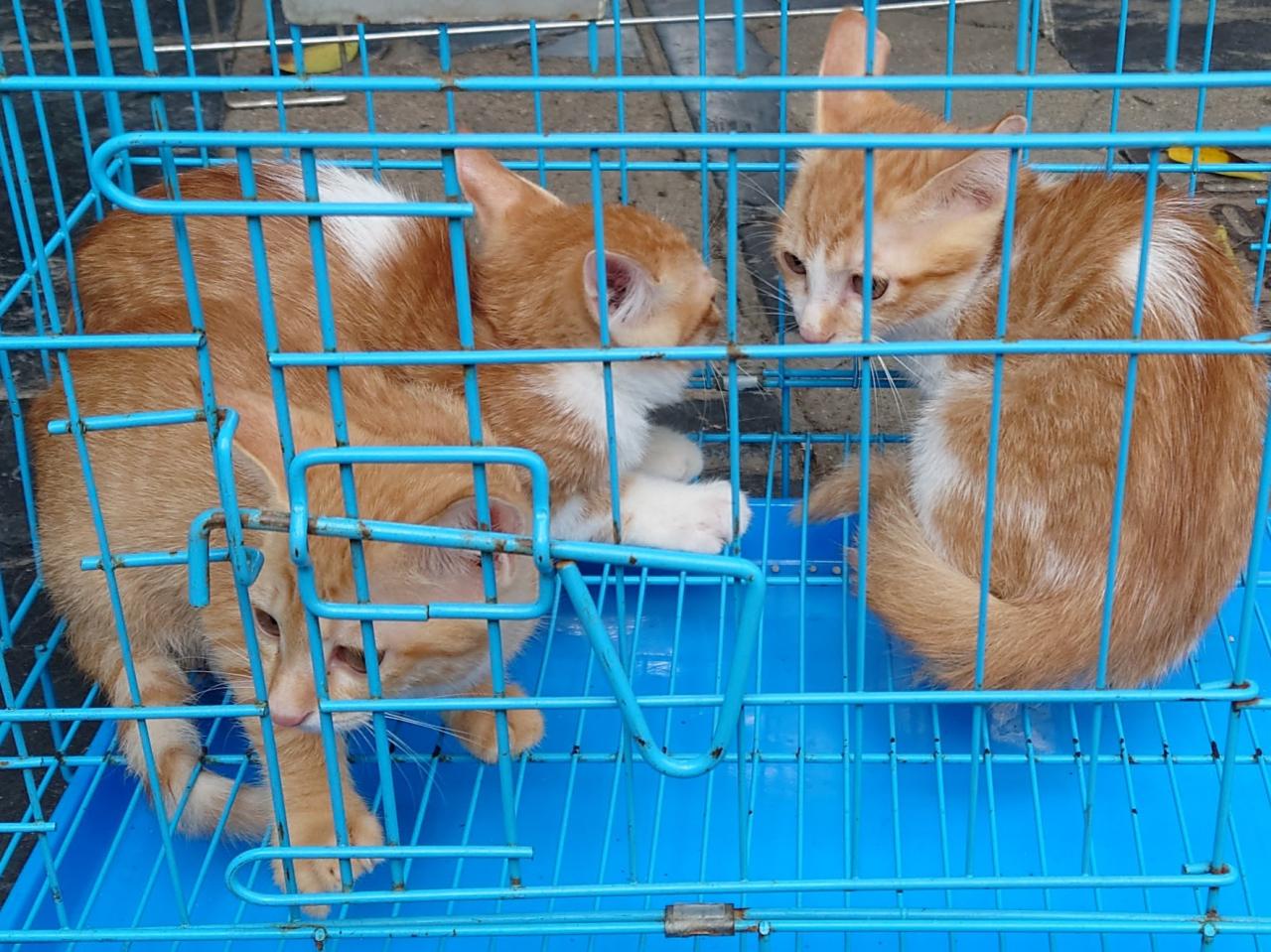 大通りの道端で、あんなケージに入れて、猫ちゃんを売ってるんですねー
