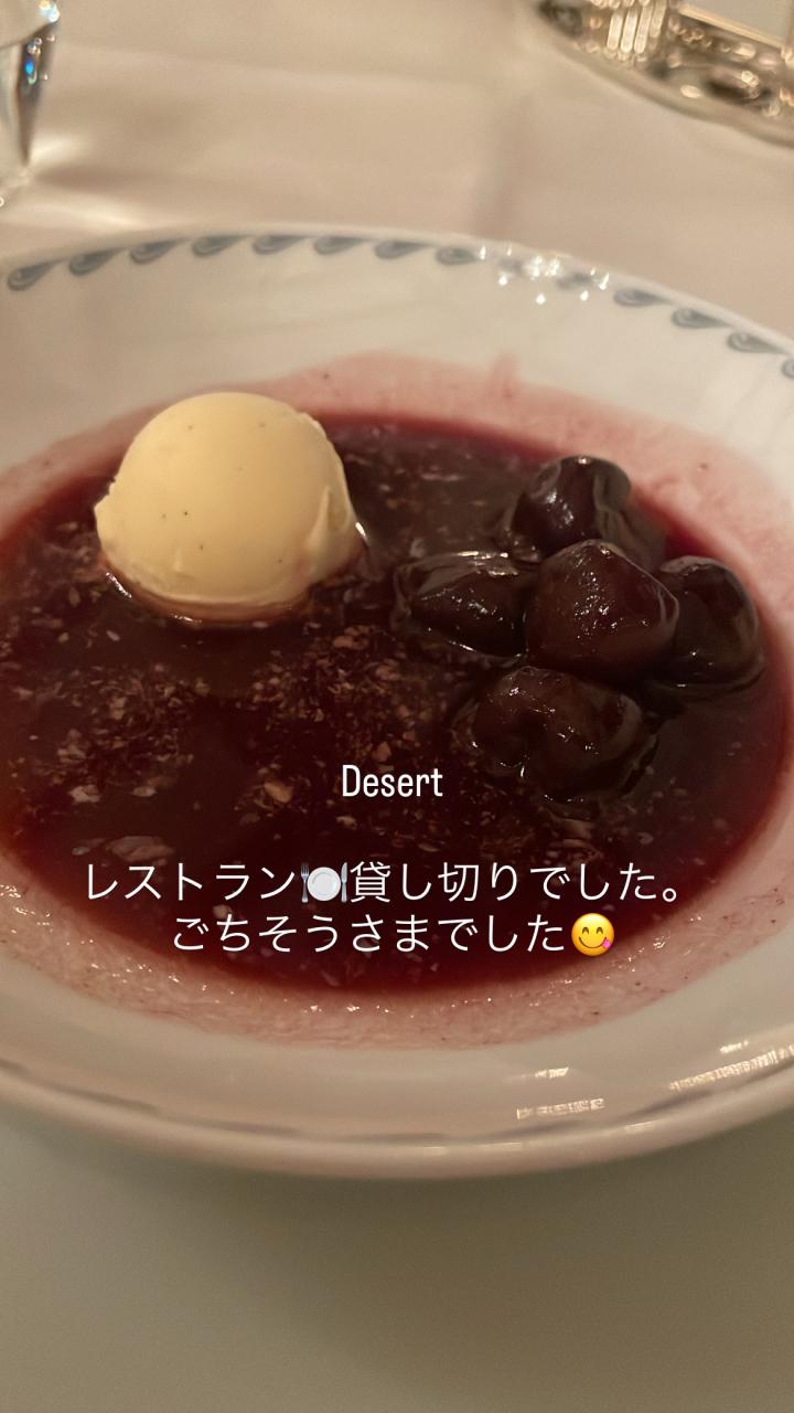 デザートは目の前で、オレンジを切って、ブランデーで香りを移したチェリーのジュビレ