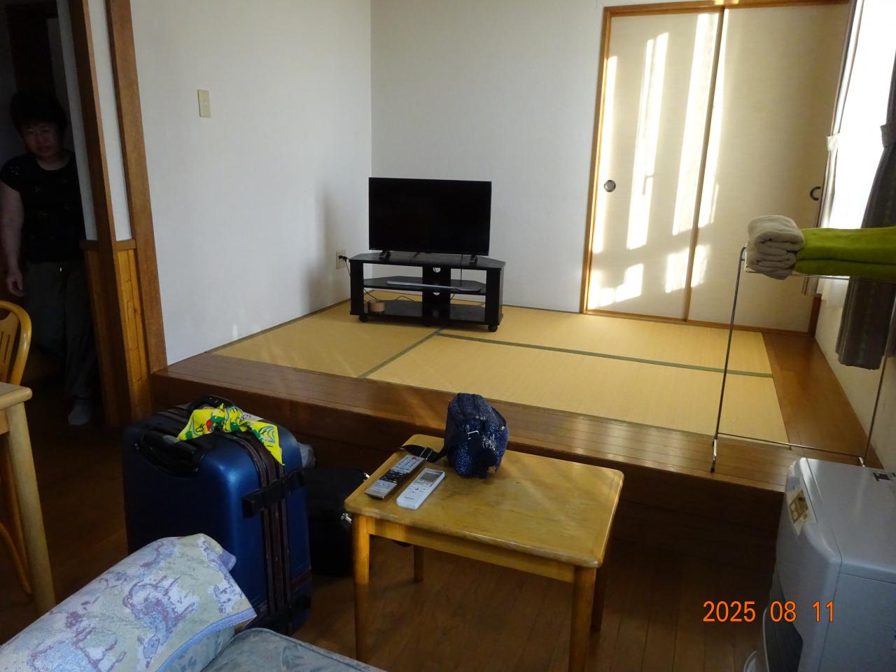 部屋にいるときは、私はソファーに座って、カミさんは畳にゴロンとしていることが多かった。隣の部屋にいた長男と次男も同じだった模様(笑) -