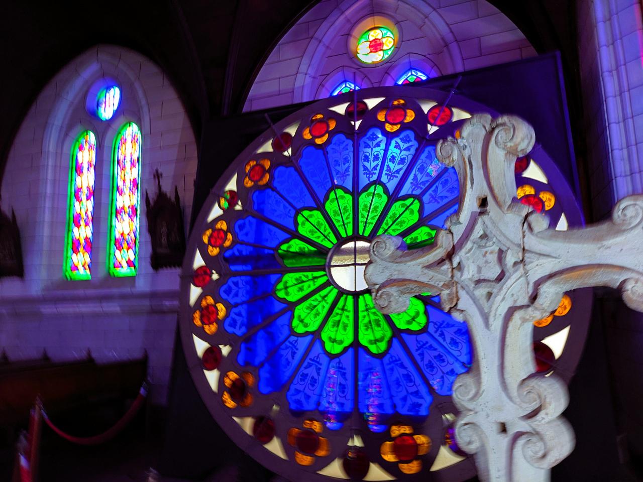 大谷石でできた「光の籠柱」など、内装も素敵でした。