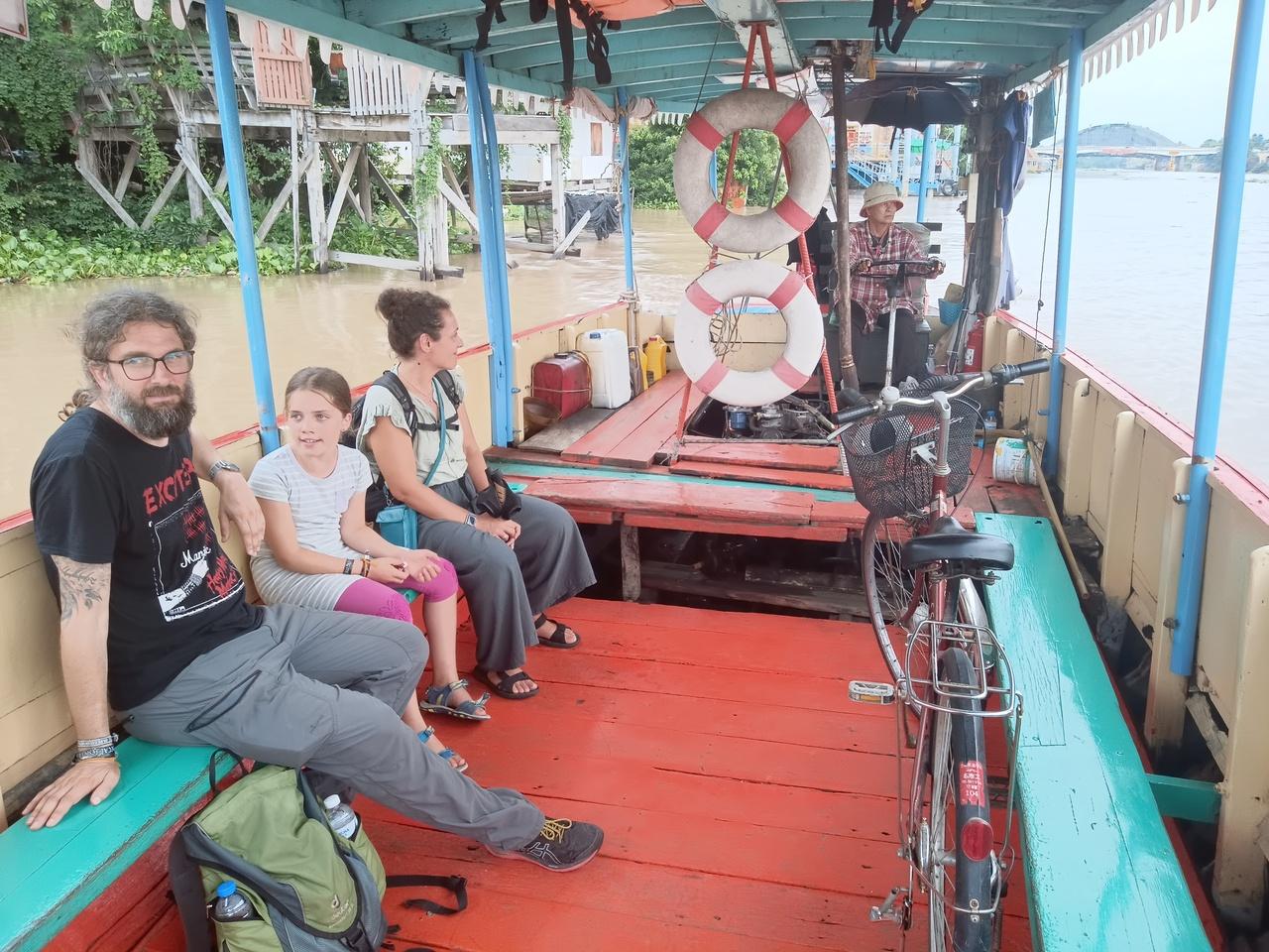駅前でレンタル自転車を借りて渡し船で市内へ。