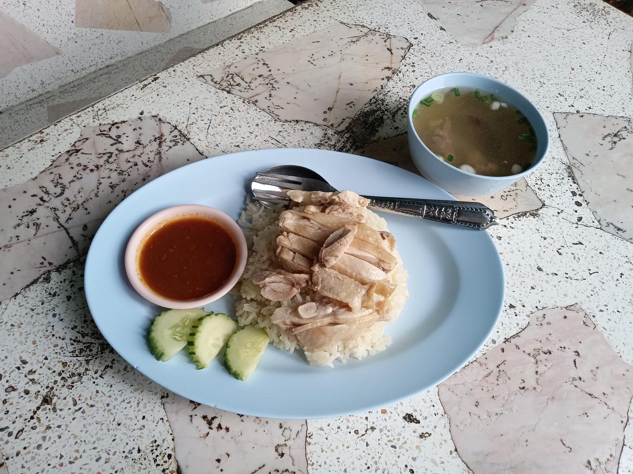 城壁内の市場で外食(ガパオライスか?)