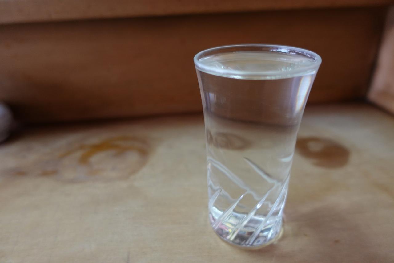 空いたとこ、一番奥着席です。毎度のように一杯冷やで。