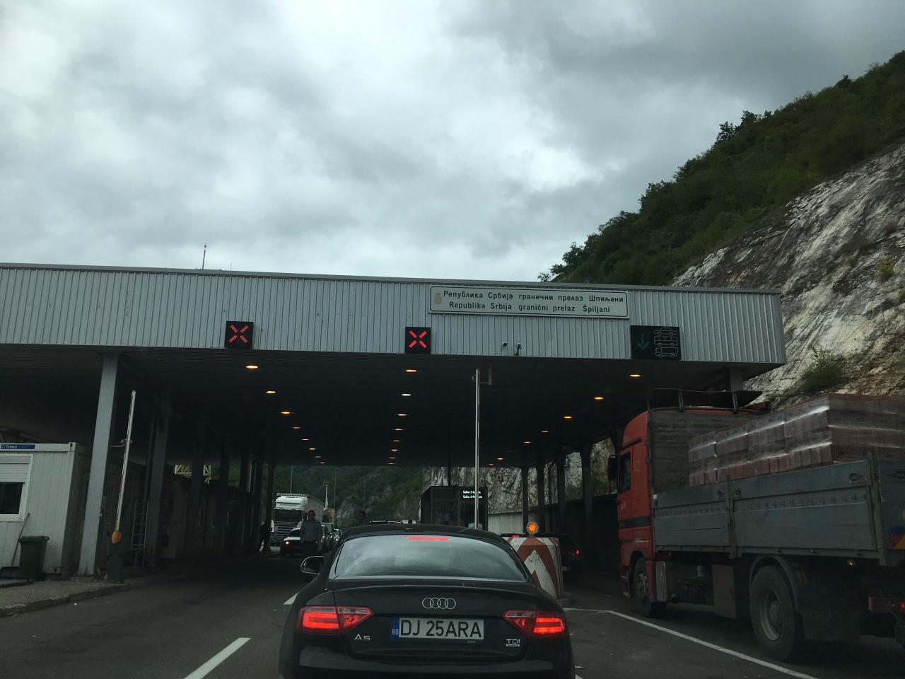 コソボ国境。EUの自動車保険がコソボは対象外だったので、手前のオフィスで一日保険を購入して入国。