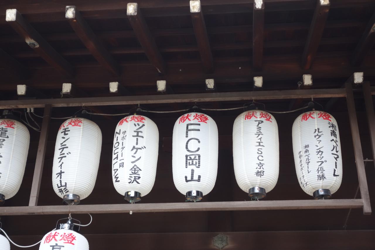 拝殿には、全国のJリーグクラブから献灯された提灯がぶら下がっていました。