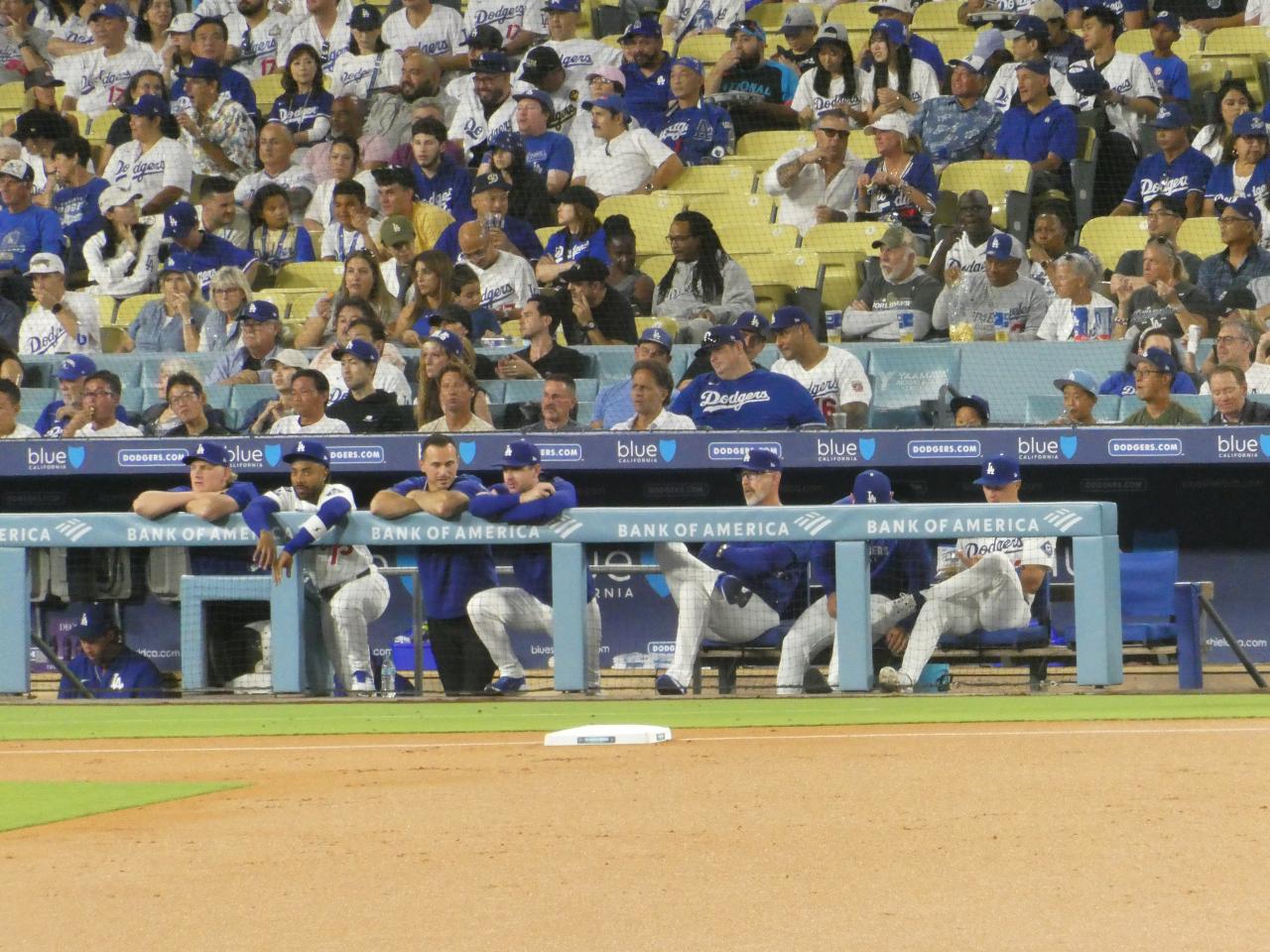 ライトスタンドから3塁側のドジャースベンチ。