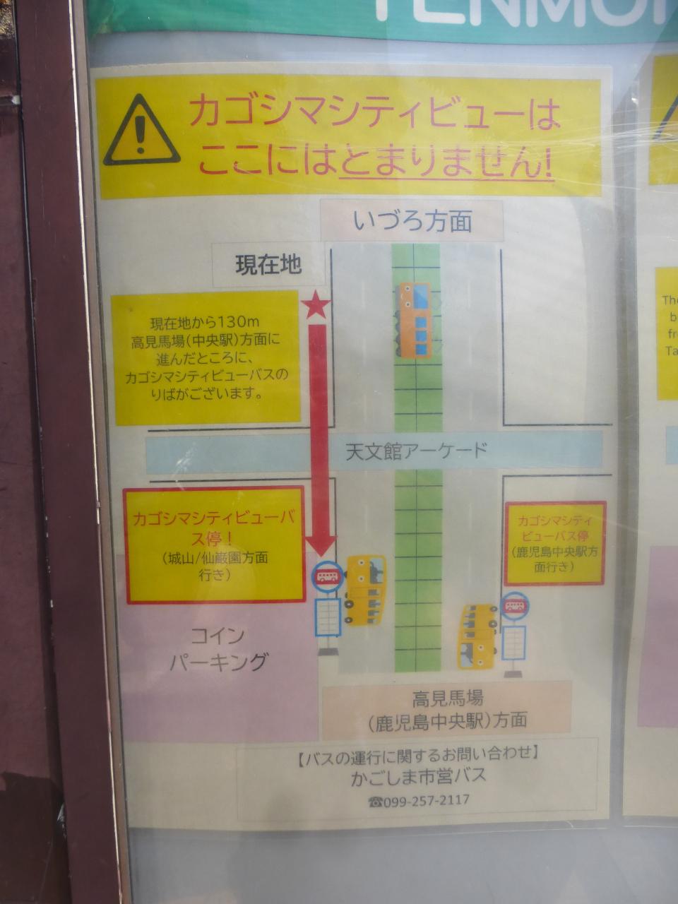 カゴシマシティビューバスの天文館バス停は、違う場所にあります。