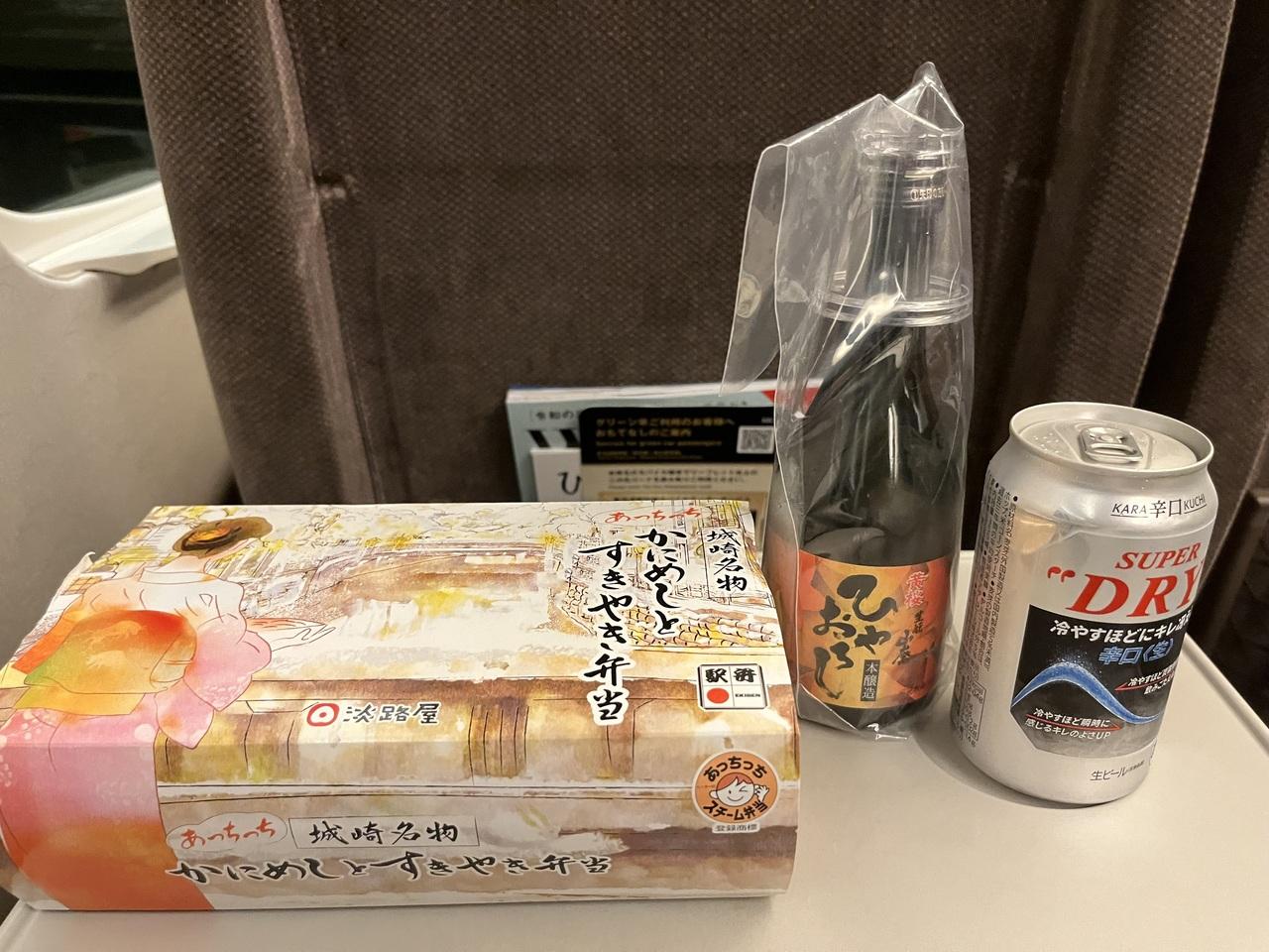 14時の新幹線こだまに乗る予定なので、日本酒を造ったら京都駅へ戻って、新幹線の改札内にある松葉さんで軽くつまんで、こだま車内で美味しいお弁当を頂いて帰路につきました。。