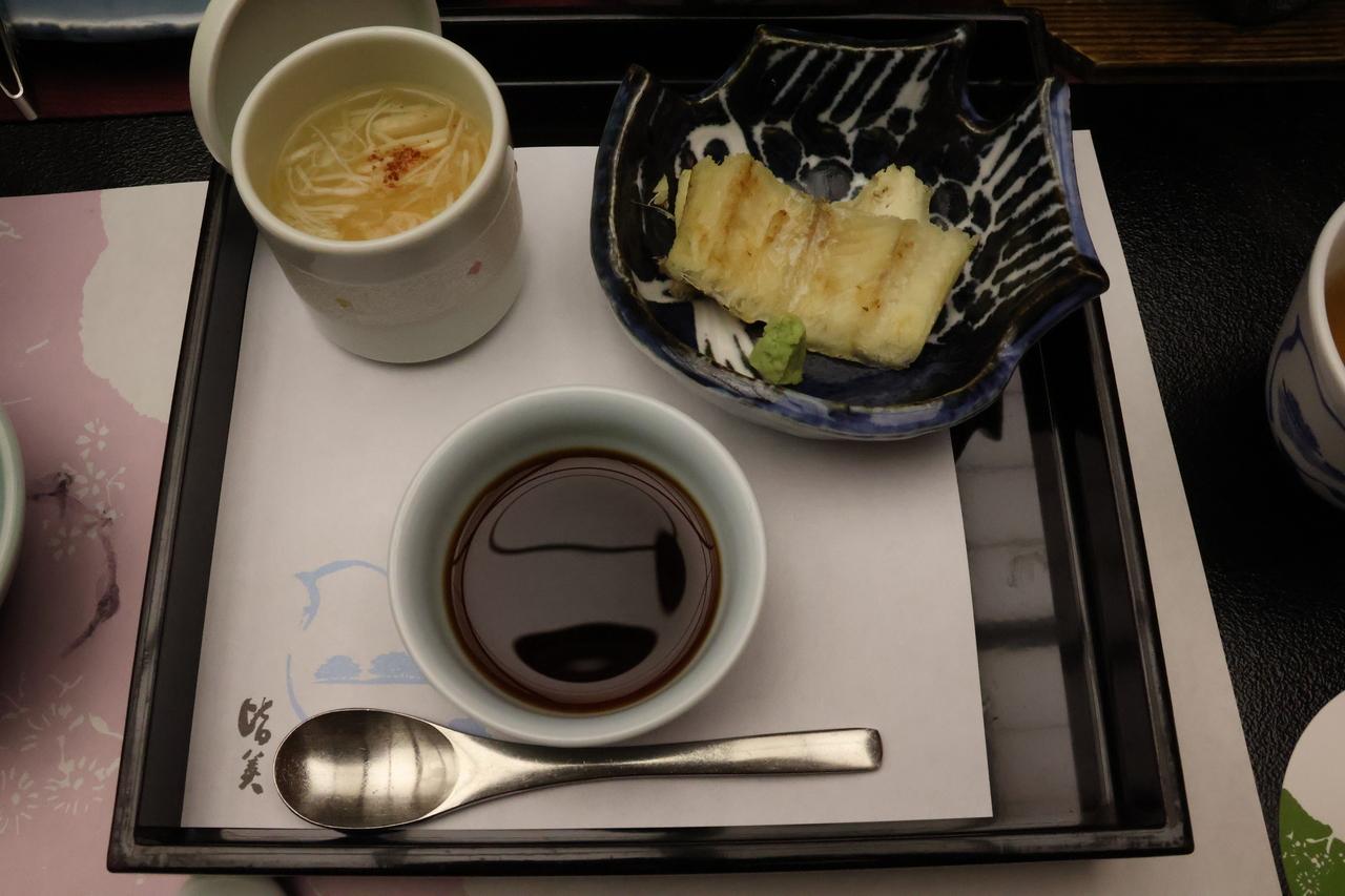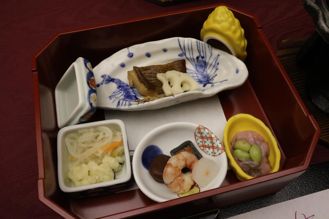 楽盛のかれい幽庵焼き、前菜の味覚盛り込みです。