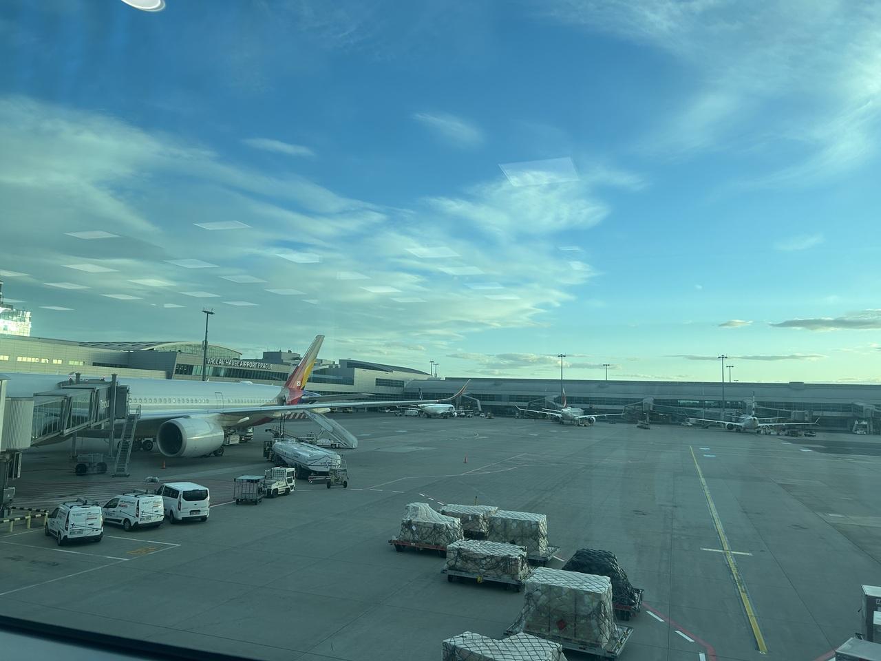 出発が遅れると連絡が入っていたので、ゆっくりラウンジで食事をしながら時間潰してます。
