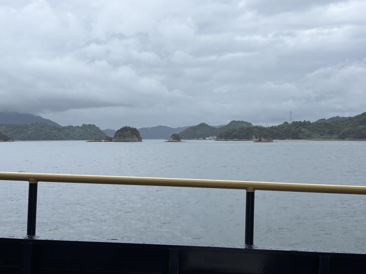 SEA SPICAは、雨の中、大島下島の御手洗港に入ります。