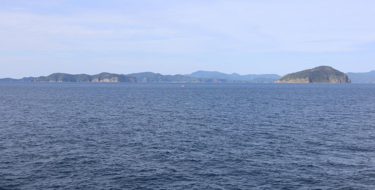 右手に島後(どうご)の南側の海岸線(加茂~津戸)、左手に島前(どうぜん)の中ノ島が見えています。