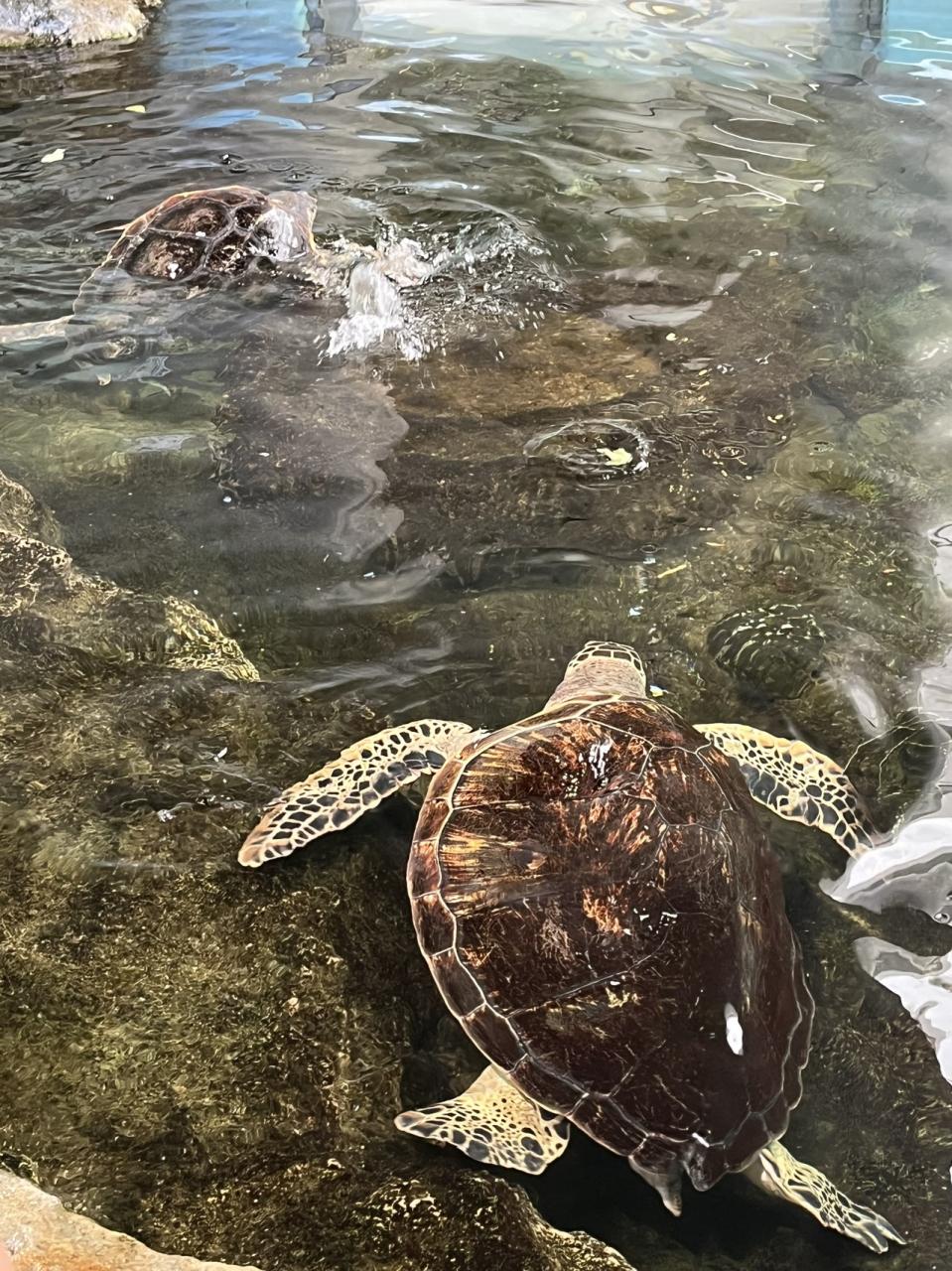 どちらが忘れちゃったけど、アカウミガメとアオウミガメ、草食と雑食?の2種類だったので、片方がカニをパクリでした( ゚д゚)