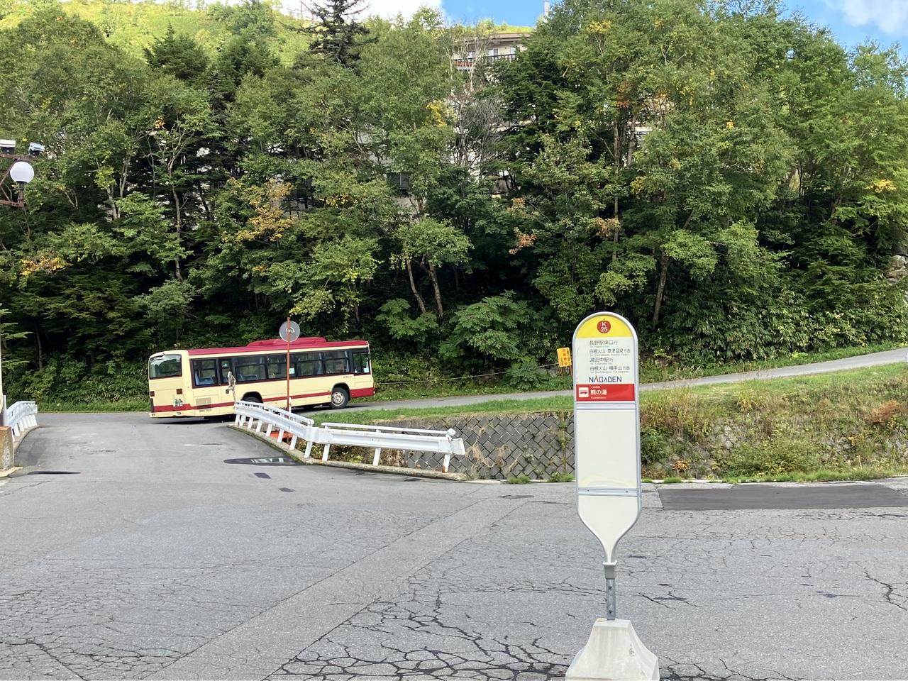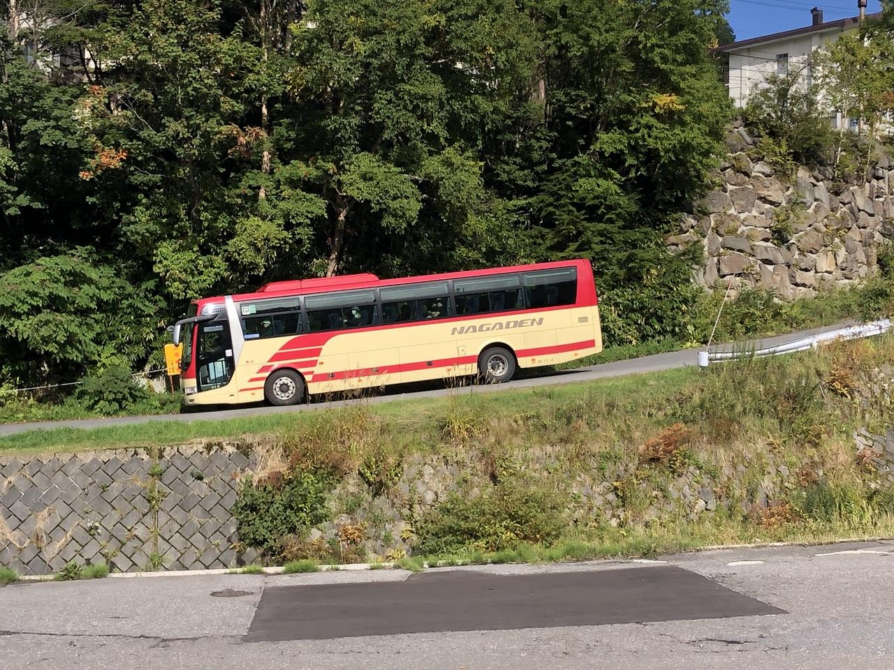 いやいや、湯田中からゆけむり号のおとなげ席に乗らんとあかんやろというお叱りを受けそうですが、このバスは湯田中駅を経由しません。次に湯田中に行けるバスでは今日中に京都まで帰れないので、そこは涙を飲みました。 -