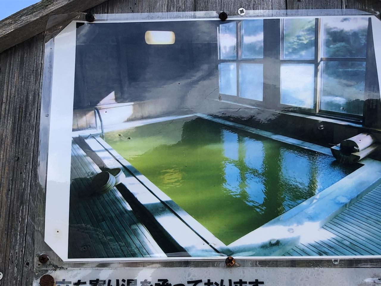 道路脇に設置してある看板は撮影してもいいでしょう。これでお風呂がどんなのか、ご紹介できます。(喜) -
