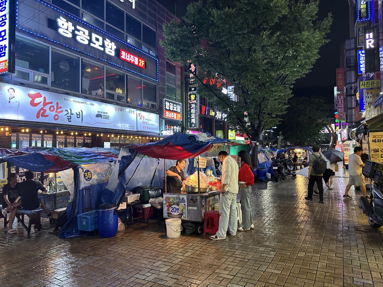 雨上がりのBIFFストリートも賑わってます。チャガルチ駅 駅