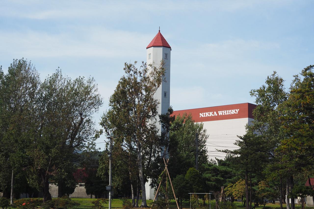 駅からは聖地・余市蒸溜所が遠目に見える。