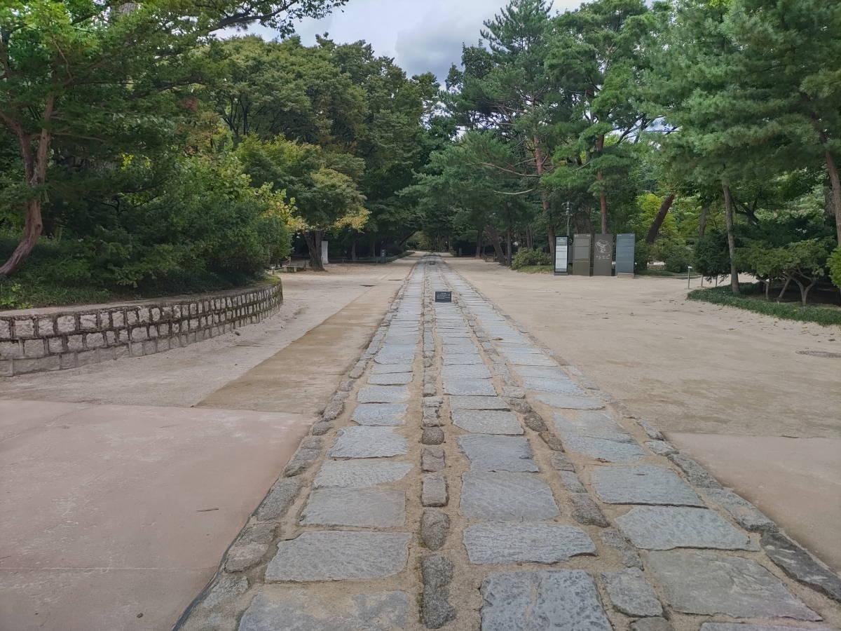 天気が良かったので、旅の最後に「宗廟」に行きました。平日はガイドツアーのみということで、13:40からのツアーを申し込みました。入場料はツアー代込みで1000ウォンでした。宗廟は朝鮮王朝の歴代王と王妃を祀る王室の祖先廟であることと、「石畳の真ん中は神様が通る道だから歩いてはいけない」という注意をされてからツアーが開始しました、中蓮池は宗廟の儀式を行う前に王が身を清め、心を鎮める「浄化」の場として使われたということでした。中蓮池で心を清めた王は、「斎宮」で身を清め、心を整えて祭祀の準備をしたそうです。宗廟の正殿には、特に功績のあった19人の王と30人の王妃 の位牌がまつられているということでした。代を重ねるごとに建物自体も拡張され、現在は19室に区分され、それぞれの間に王と王妃の位牌が祀られているそうです。その他の王と王妃の位牌はとなりの「永寧殿」に祀られていました。ツアーはここまでで、見たい人は「香大庁」を見て帰っていいということでした。「香大庁」は、祭祀を行う前に供物や香を準備する場所で、実際の宗廟内部では見られない位牌のレプリカや、供物が置かれた状態が再現され、祭礼の様子がわかるようになっていました。