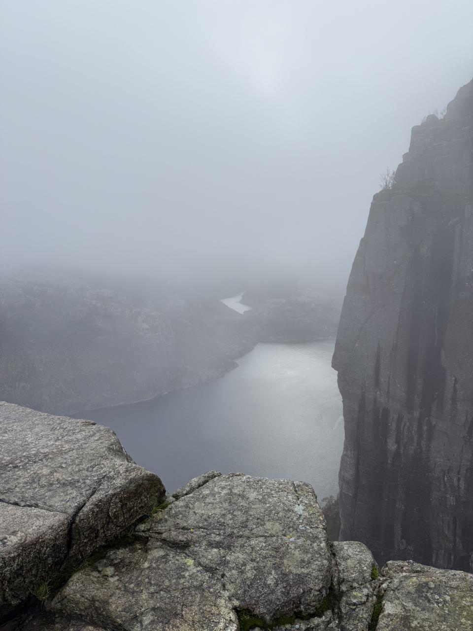 約30分ほどして少し霧が切れてフィヨルドが少しはっきり見えてきました