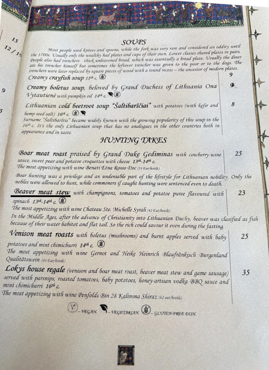 ロキスのジビエメニュー。目的のビーバーがちゃんとある。調理方法はシチューの様だ。