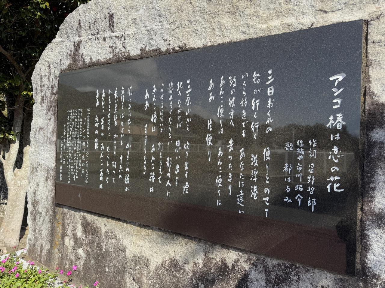 昭和の人なら知っている「アンコ椿は恋の花」の碑。