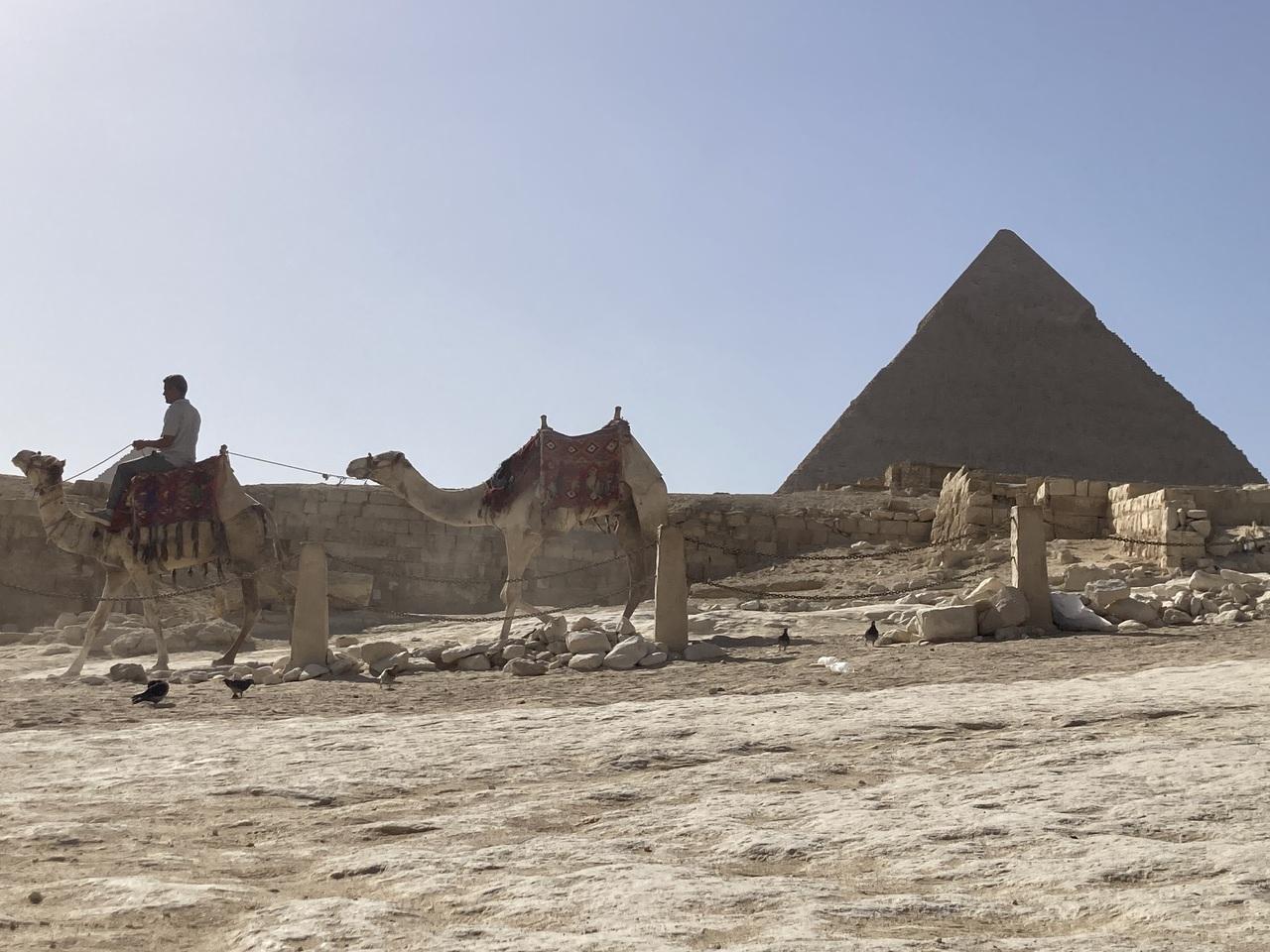 ラクダとスフィンクス。ラクダはぼったくりに会うとか、いい話を聞きません。参加した旅行会社では昔ラクダに乗ったお客さんが落ちてけがをしたことがあるので、それからは乗るの禁止になったそう。