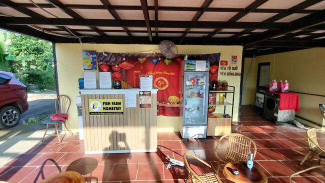 夕食。養殖したテレピアの揚げ物が出てきた。美味しかったです