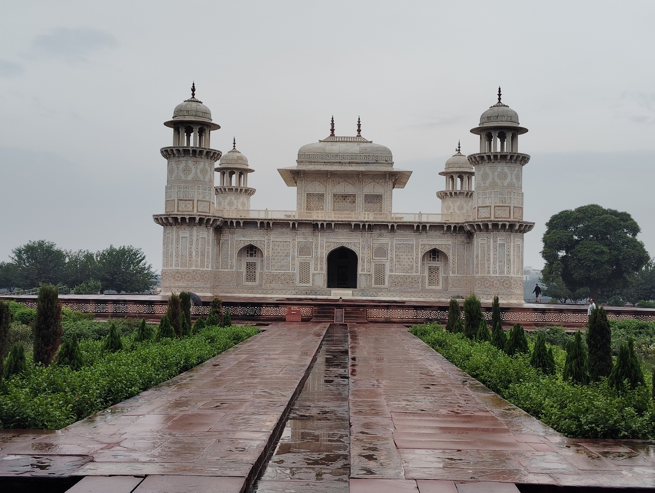 白い大理石: ムガル帝国時代、赤い砂岩から白い大理石への移行期を示す最初の建築物の一つ。 -