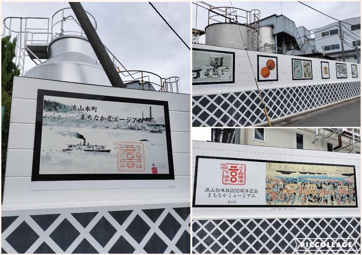 外へ出ました。とね。。もうキッコーマン流山工場なんですよね。目の前が。そこには昔の写真がずらら~っと。これを見ながら歩いてゆきます