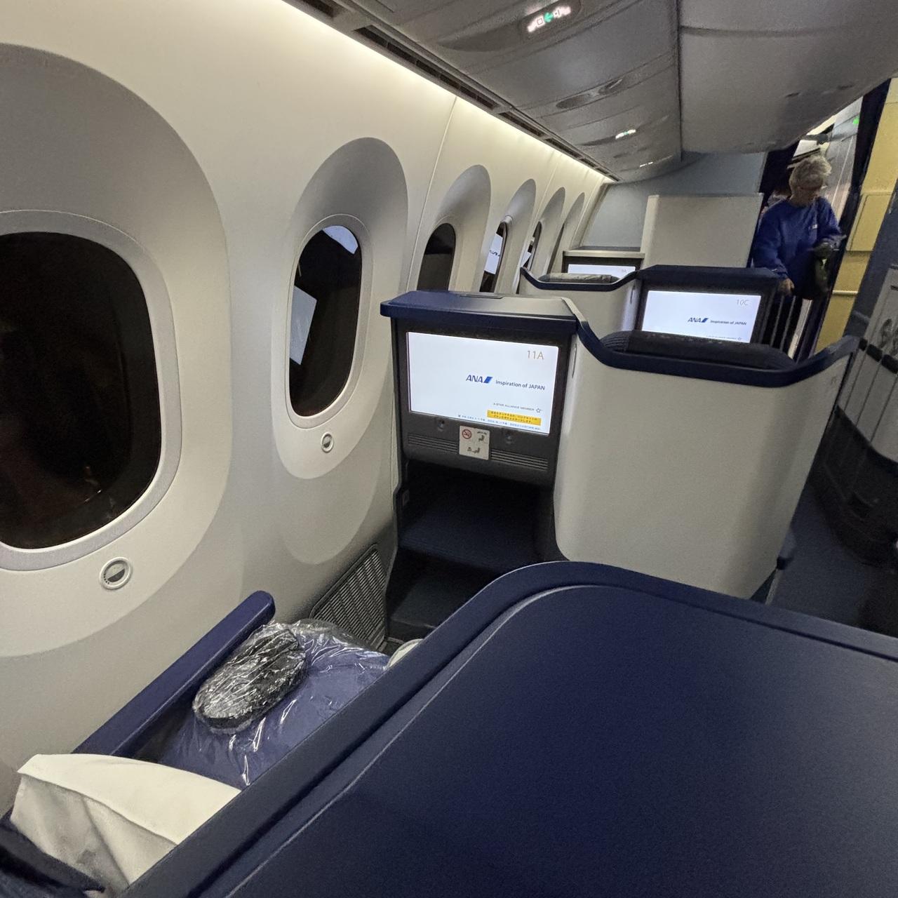 成田空港行きはB787-9でビジネスクラスはスタッガード席です。