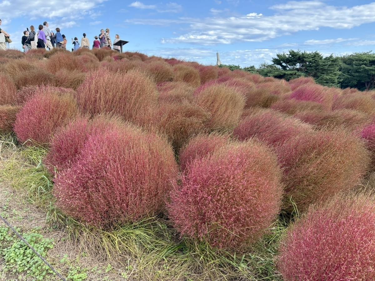 ひたち海浜公園。向こうの丘に見えるのがコキアのようです。