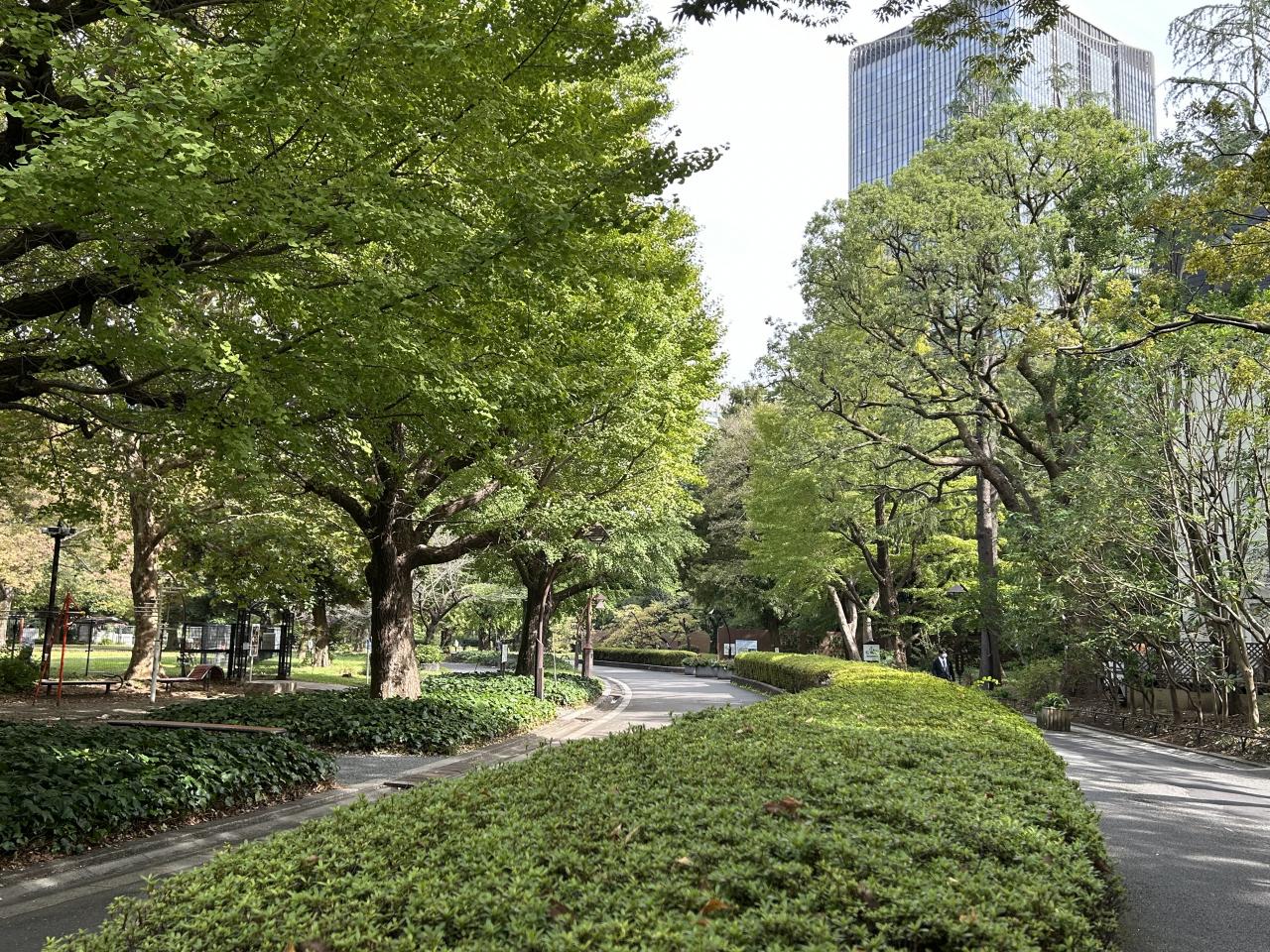 日比谷公園から見えた帝国ホテル東京。