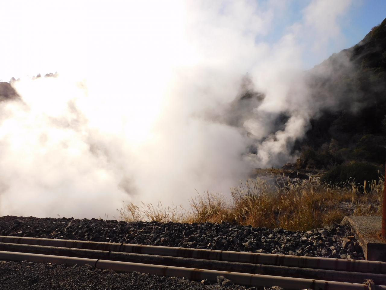登山を終了し,鹿児島県側にある妙見温泉に向かいました.霧島温泉に向かう途中にある噴気地帯.