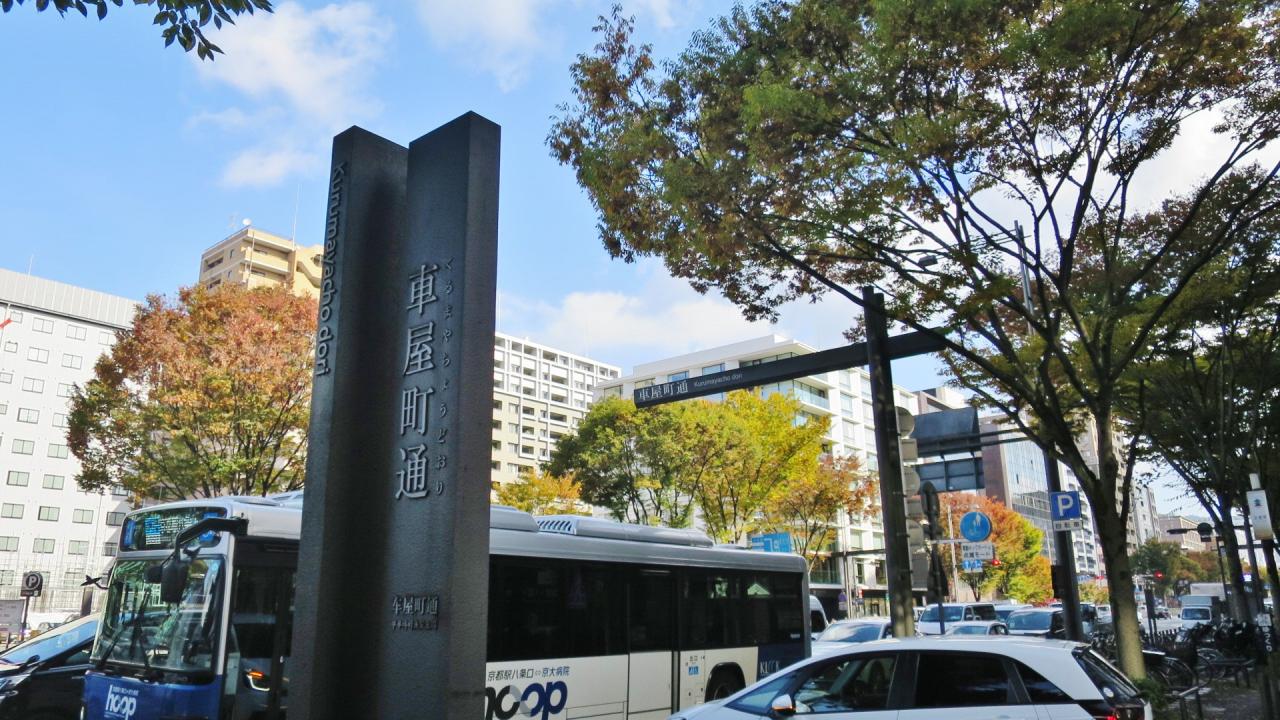 地下鉄から出たところが「烏丸通」で、1本隣の筋が「車屋町通」 -