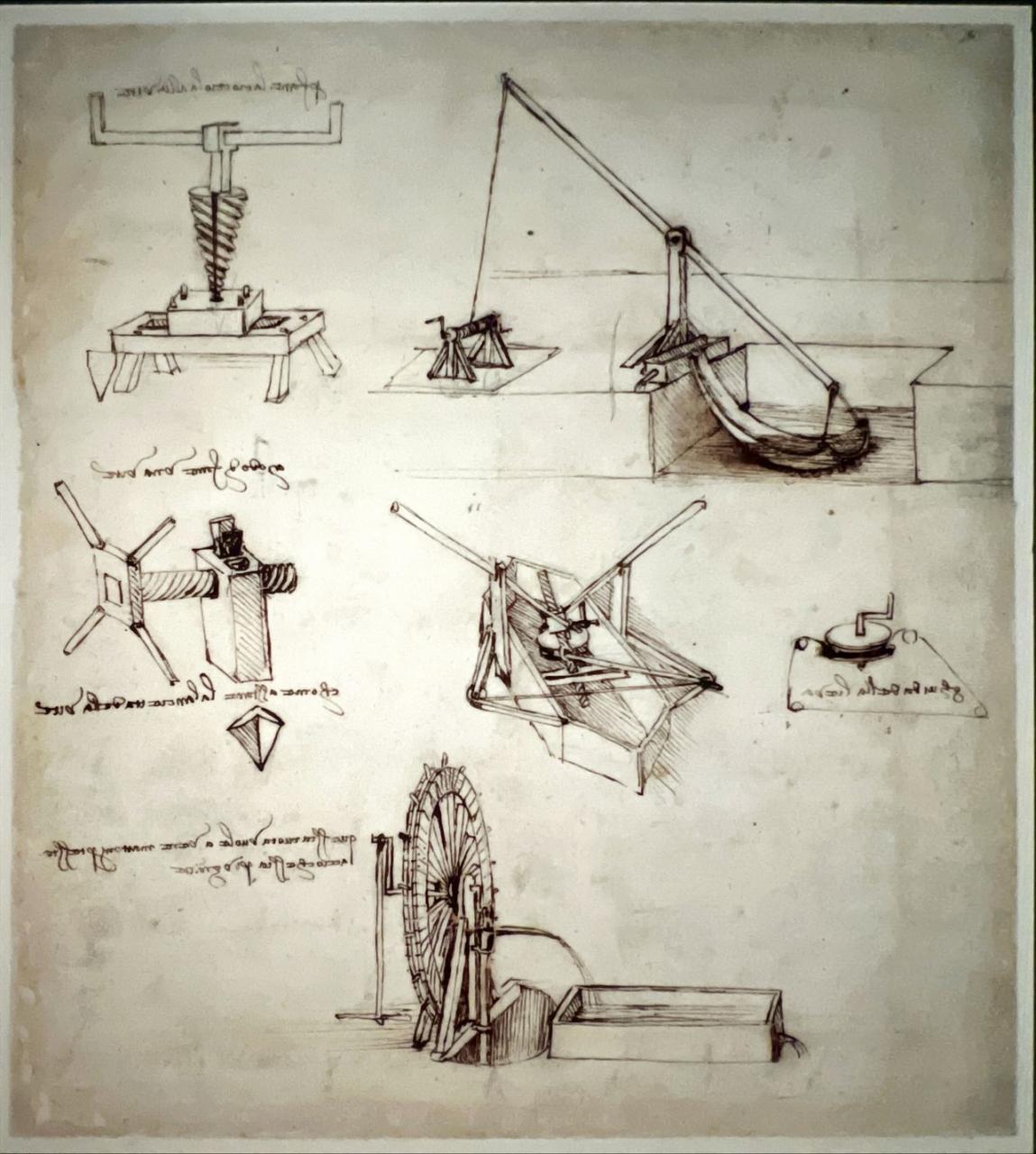 レオナルド・ダ・ヴィンチの「アトランティコ手稿」の2枚を拡大したものが展示されていて、よく見えました。