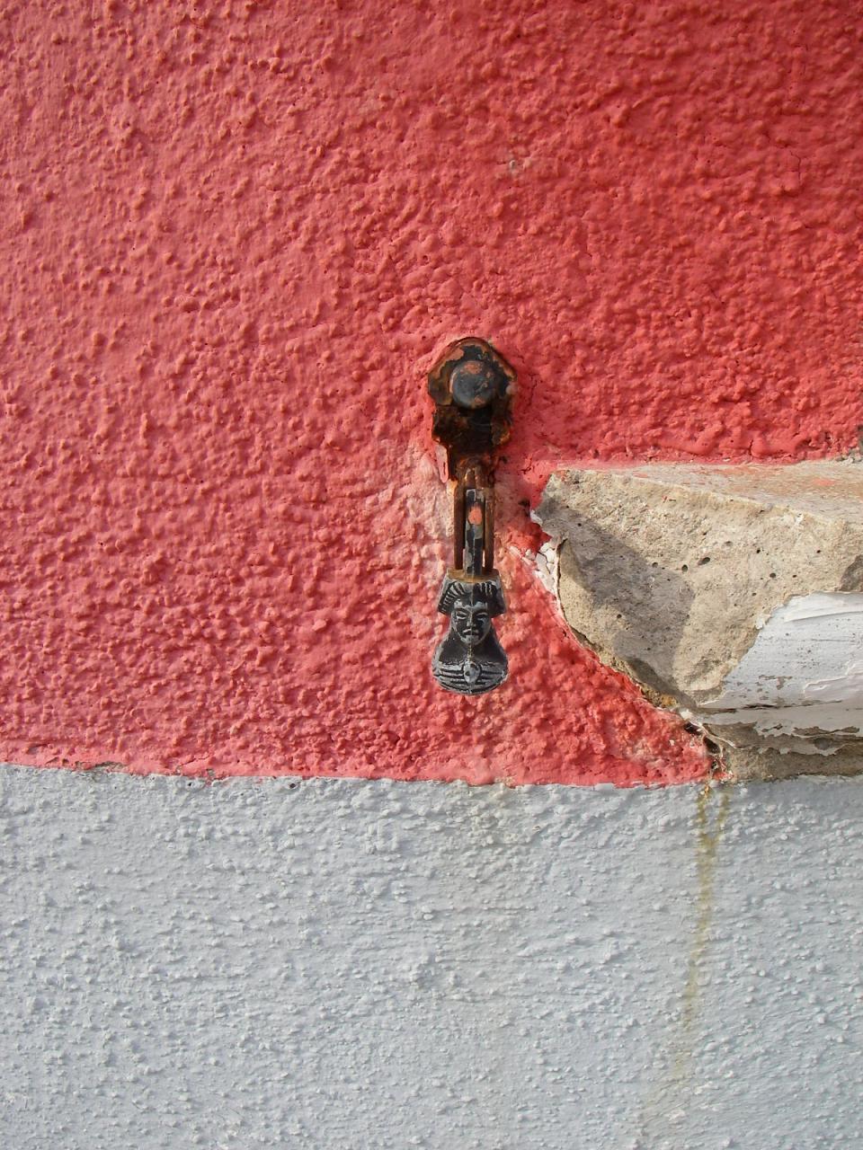 11:47 レストラン Osteria Acquastanca の入口に木魚の様な物がロープで吊るされていた