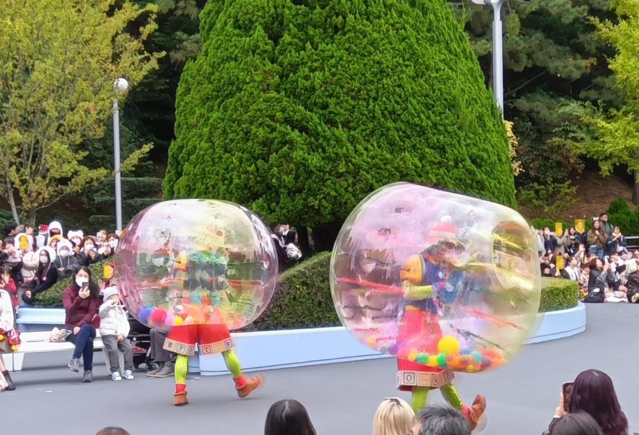 クリスマスツリーが、ポップコーンバケットを連想させます。 パレードは、ダンサーさんの衣装も踊りも素晴らしく、非常に満足感がありました。 もうこれでランドに来た甲斐があったと思いました。
