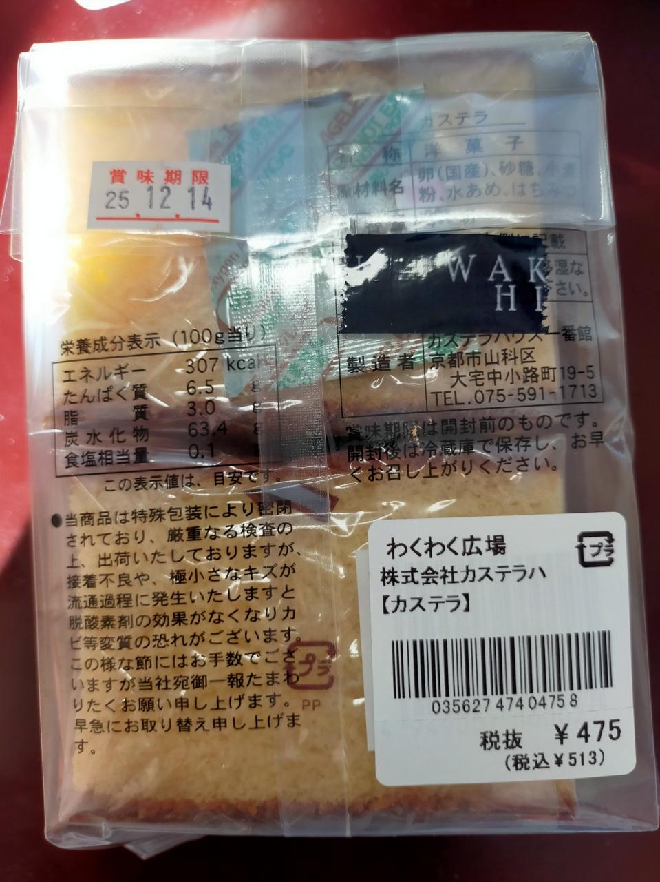 カステラは 税込みで513円です