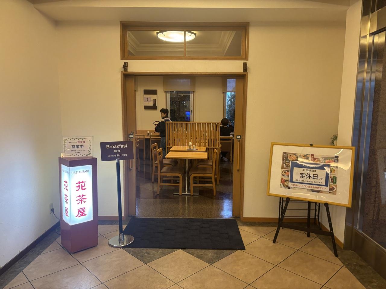 7時に1階フロント脇にあるレストラン、花茶屋