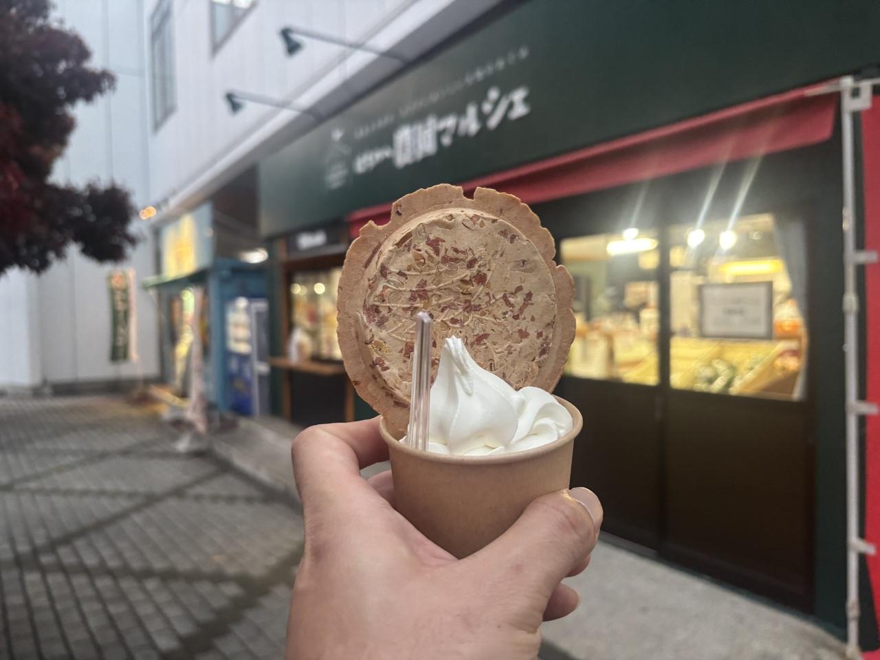 駅前にあるはちのへ農園マルシェでソフトクリーム(\450)
