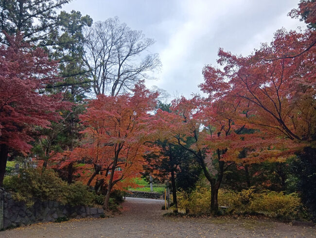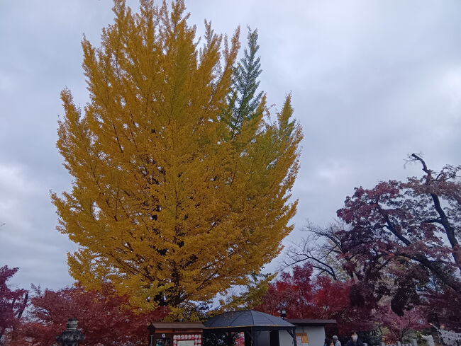 駐車場と同じ高台(階)に境内があります。一部散ってしまっている木がありますが、写真のように真っ赤な紅葉と真っ黄色のイチョウが立っています。両方とも艶やかでコントラストが実に美しいです!