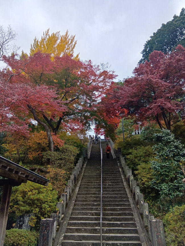 さらに別の階段、瑞雲閣と反対側です。赤、黄色の紅葉がミックスされた光景、美しい景観です。
