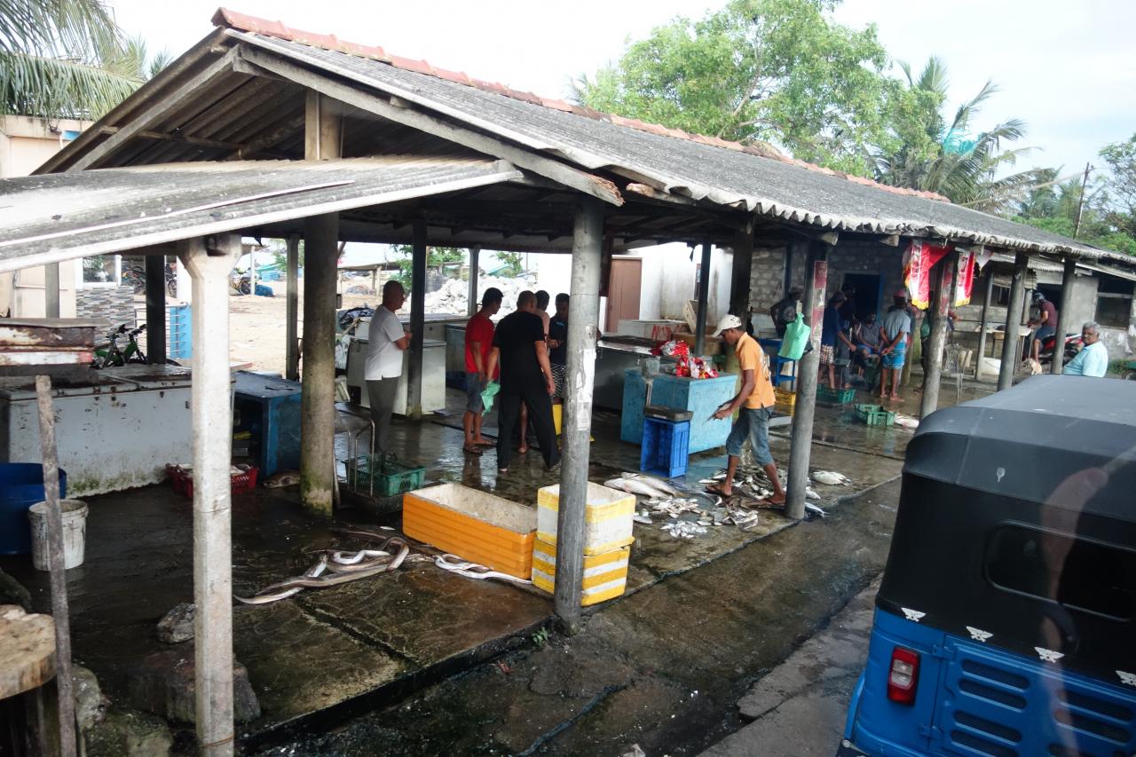 海沿いを北上し始めると、ホテル近くに魚市場があったようで魚が並んでいました。